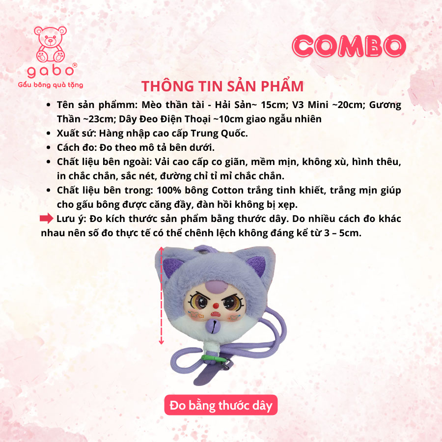 Combo 3 Blind Box Bé Ba Nhà Làm – Giao ngẫu nhiên, Mèo Thần Tài, V3 mini, Gương Thần, Dây Đeo, Hải Sản TẶNG IP 17 PRO MAX 45CM GABO TEDDY BEAR