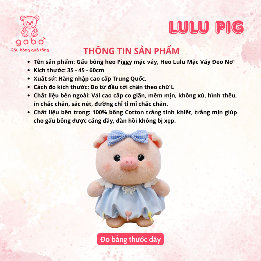 – Tên sản phẩm: Gấᴜ Bông Heo Hồng Piggy Mặc Váy, Heo Lulu Mặc Váy Đeo Nơ Công Chúa, Thú Nhồi Bông Heo Váy Babydoll Lông xù Mềm Mịn