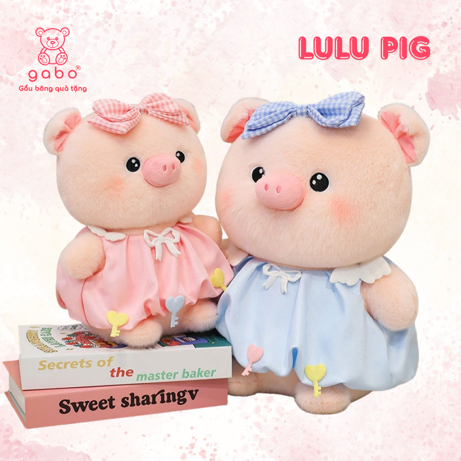 Gấᴜ Bông Heo Hồng Piggy Mặc Váy, Heo Lulu Mặc Váy Đeo Nơ Công Chúa, Thú Nhồi Bông Heo Váy Babydoll Lông xù Mềm Mịn