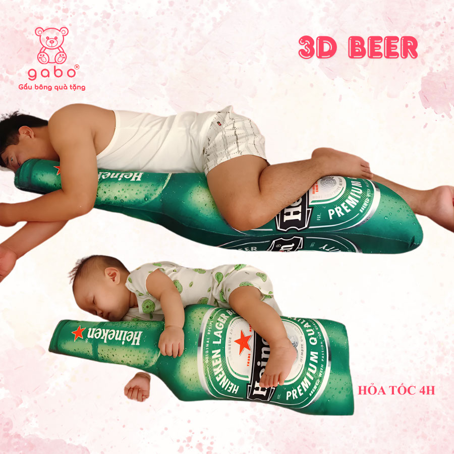 Gấu Bông 3d hình Chai Bia Heniken, Gối ôm 3d Heniken, giống thật 100% gối ôm cho bé gối ôm dài, hình thú, cute