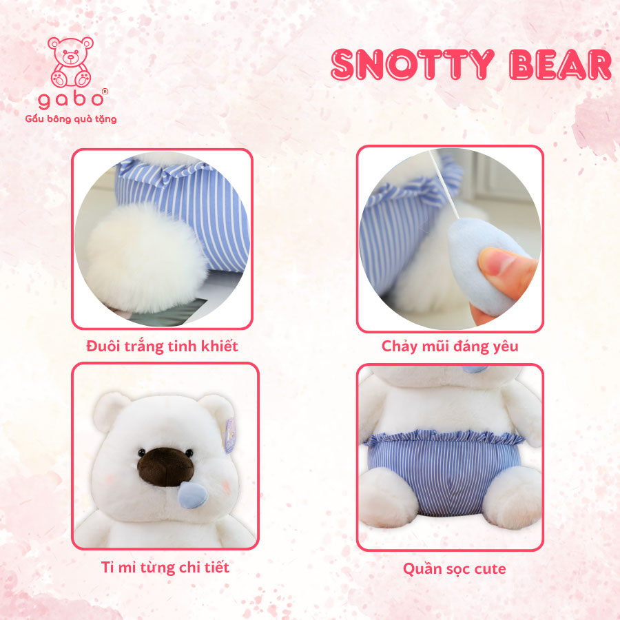 – TÊN SẢN PHẨM: Gấu Bông Gấu Trắng chảy mũi, nước mũi kéo ra được, Gấu teddy bị cảm quà tặng bạn gái