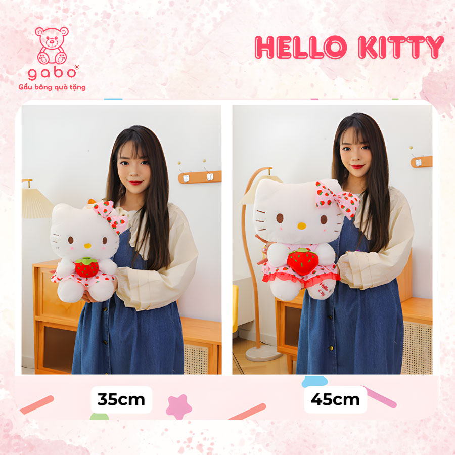 – Gabo cam kết Gấu Bông Hello Kitty Ôm Dâu 100% giống mô tả và hình ảnh đăng tải.