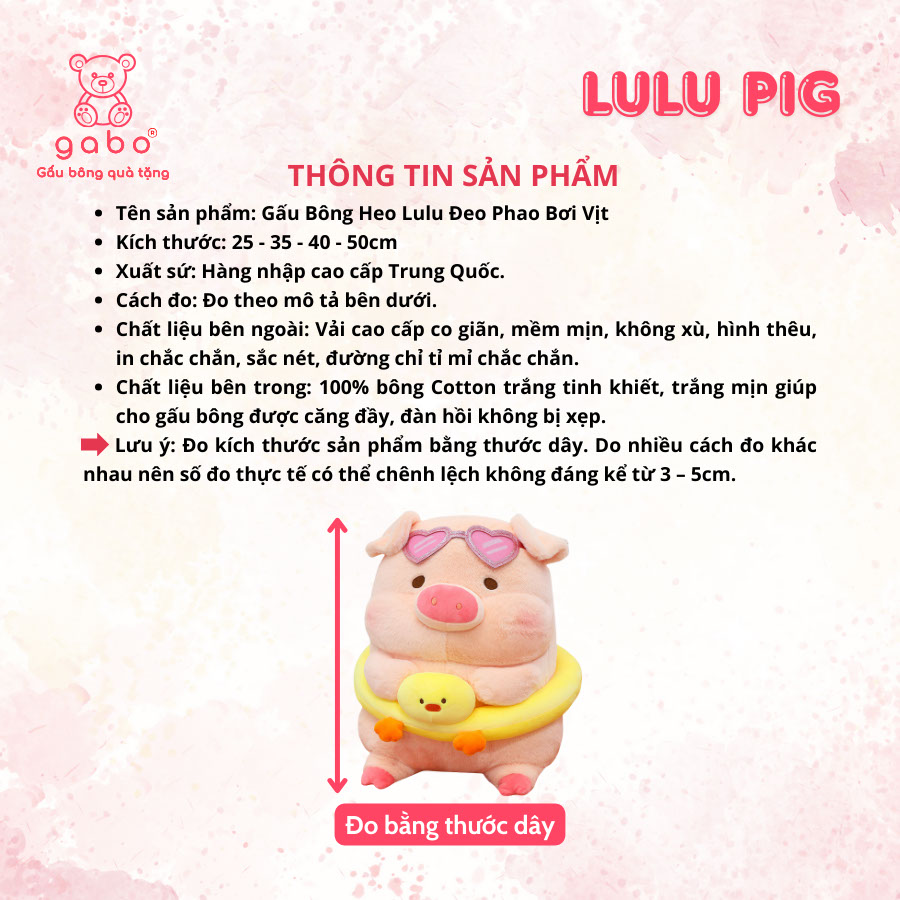 – TÊN SẢN PHẨM: Gấu Bông Heo Lulu Đeo Phao Bơi Vịt, Gấu Bông Heo Đi Biển Ôm Phao Vịt Đeo Kính