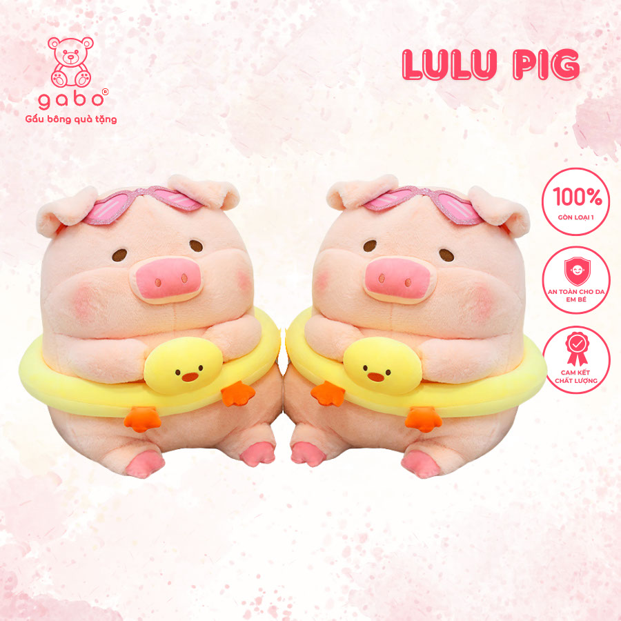 Gấu Bông Heo Lulu Đeo Phao Bơi Vịt, Gấu Bông Heo Đi Biển Ôm Phao Vịt Đeo Kính