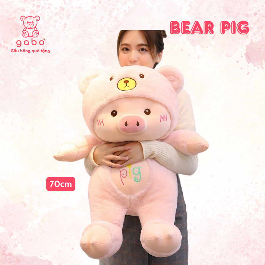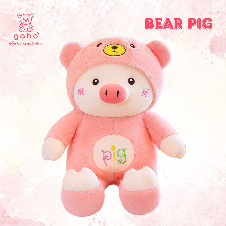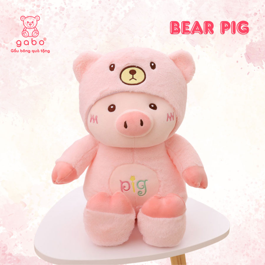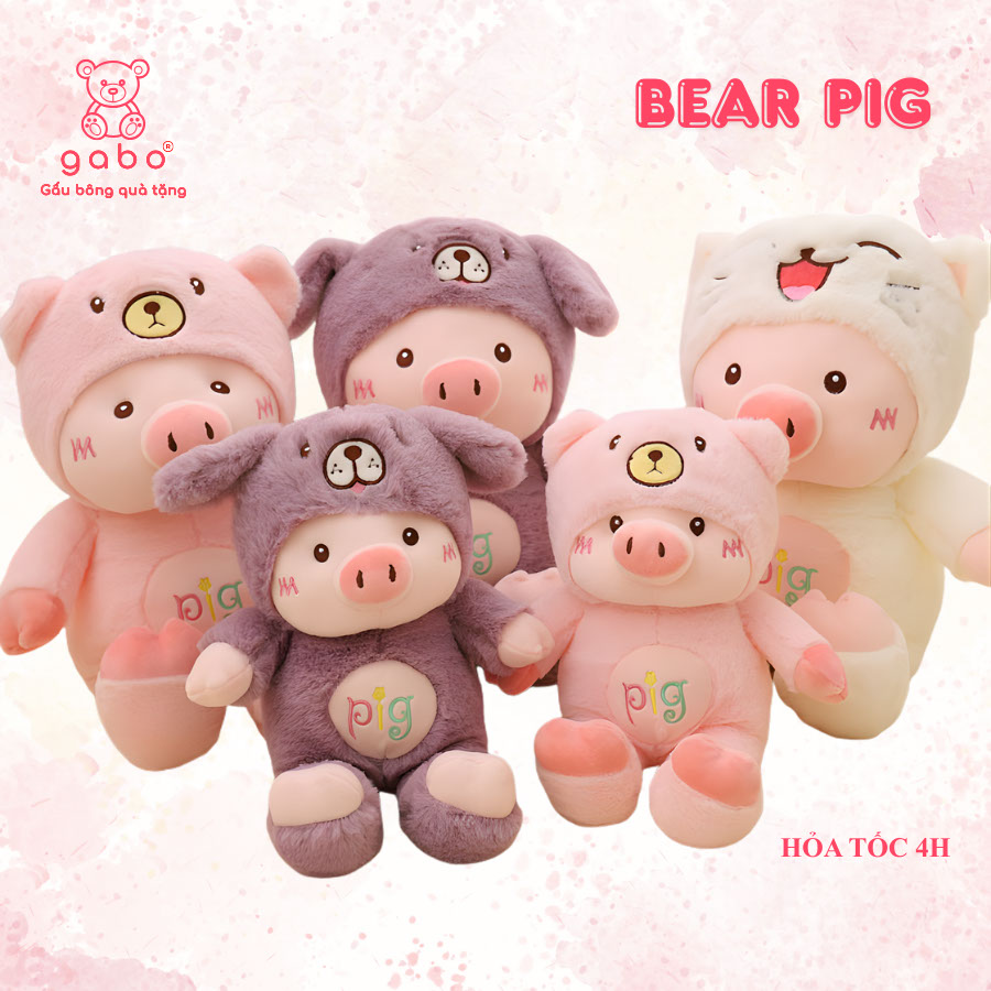 Gấu Bông Heo Pig Đội mũ Gấu, Heo Mặc đồ Gấu Lông siêu Mịn