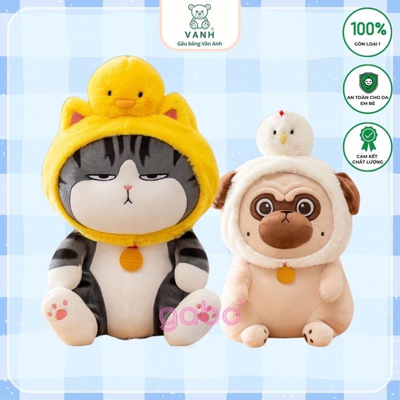 Thông tin sản phẩm: Gấu Bông Mèo Hoàng Thượng Đội Nón Vịt – Chó Đội Nón Gà