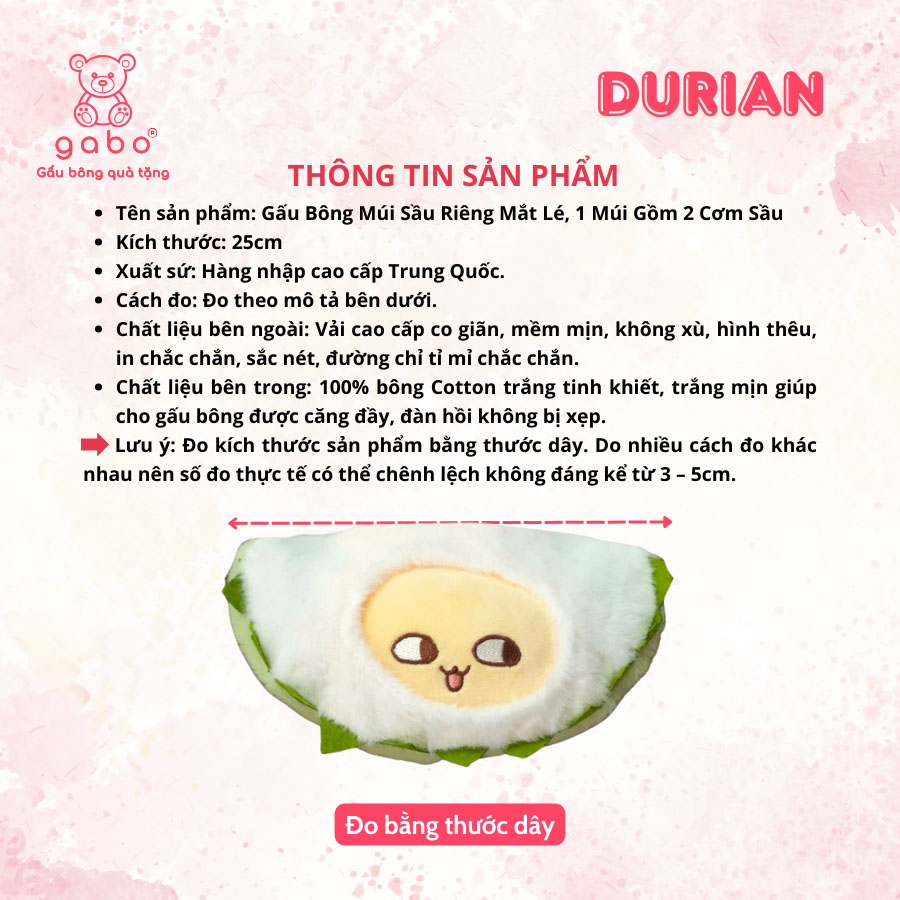 – TÊN SẢN PHẨM: Gấu Bông Múi Sầu Riêng, 1 Múi Gồm 2 Cơm Sầu Tách Ra Được, Mềm Mịn Hàng QCCC