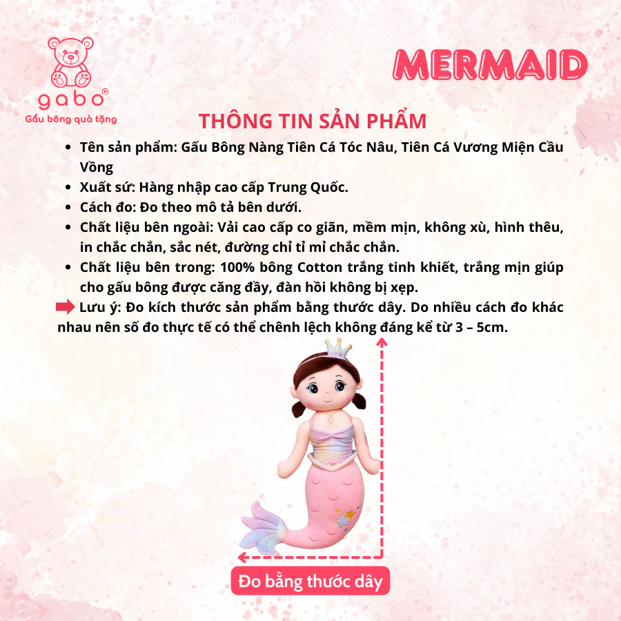 – TÊN SẢN PHẨM: Gấu Bông Nàng Tiên Cá Tóc Nâu, Tiên Cá Vương Miện Cầu Vồng