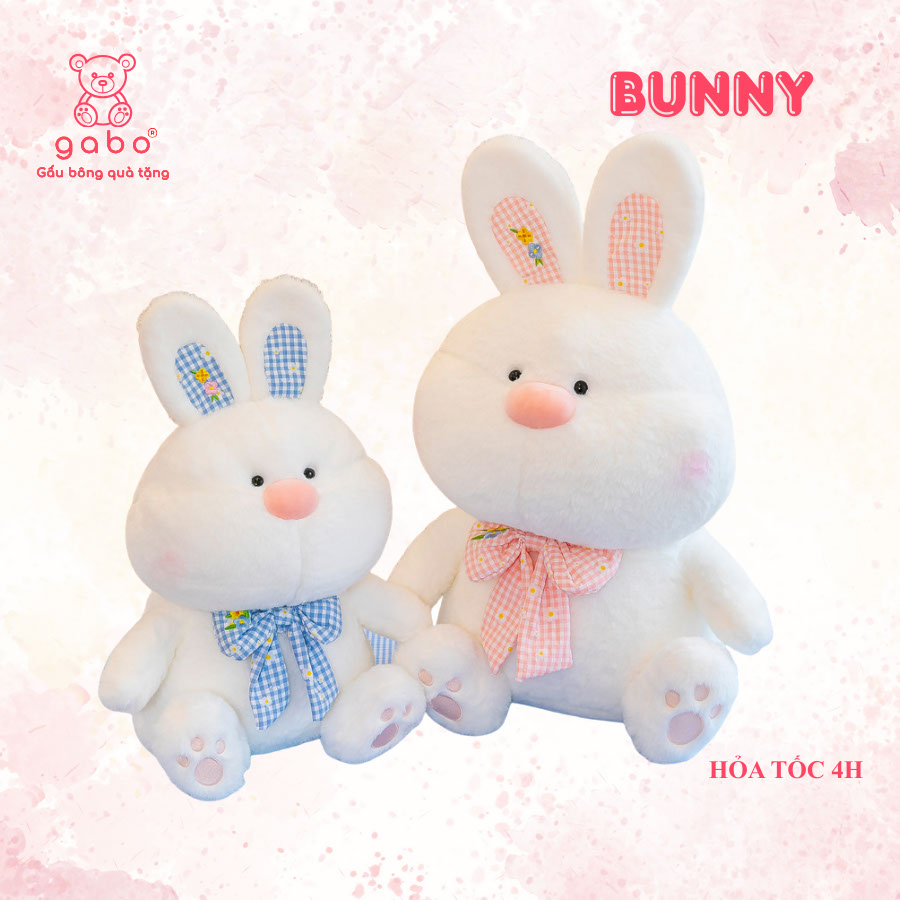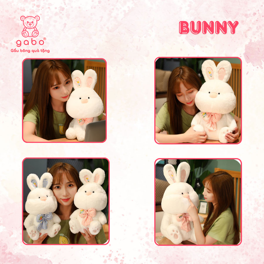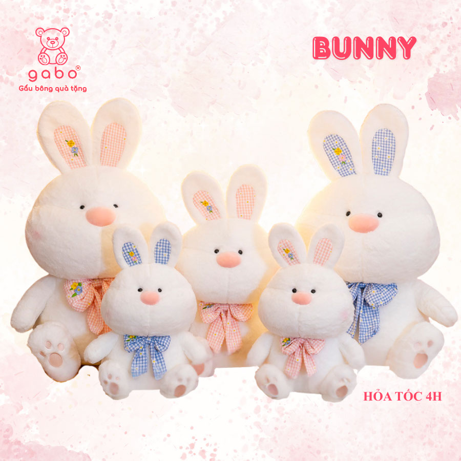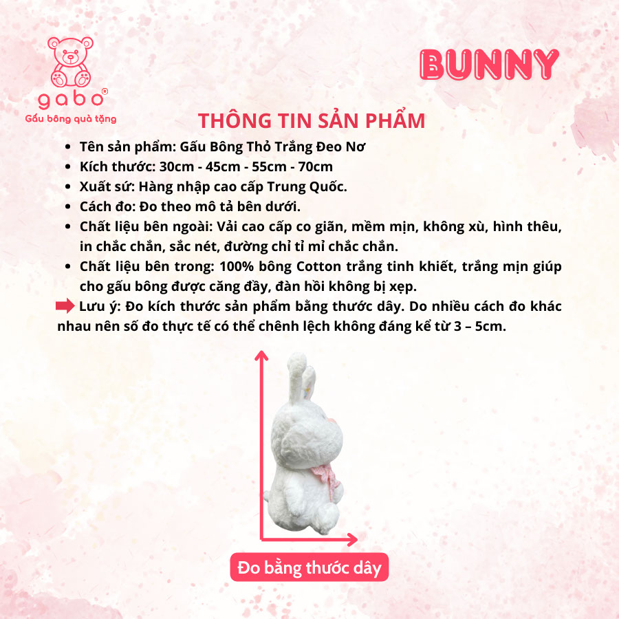 – Gấu bông thỏ trắng đeo nơ cao cấp, mềm mại