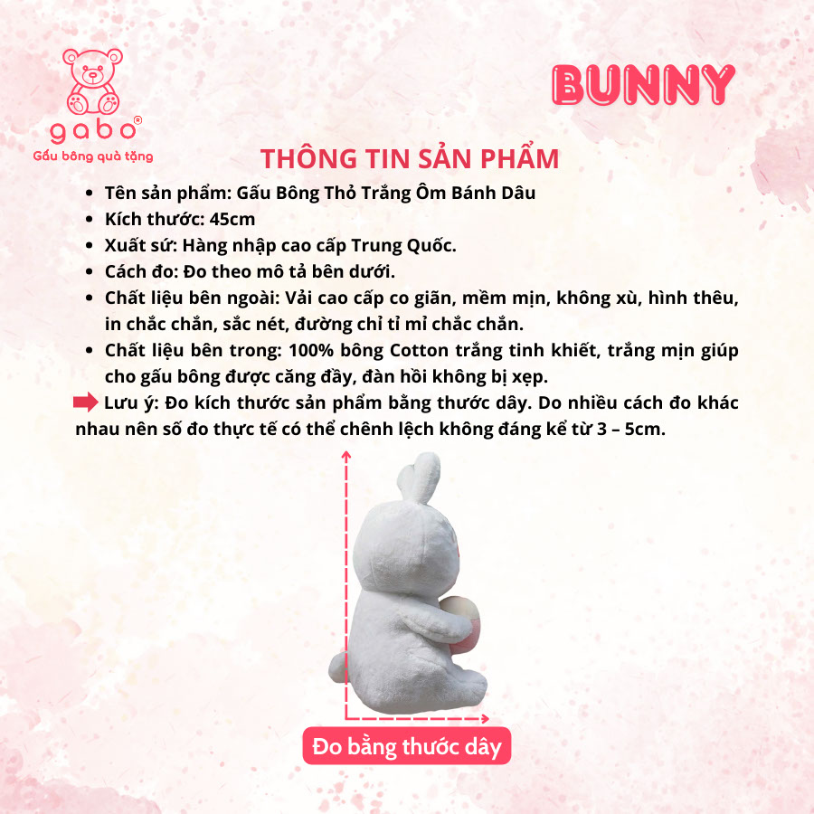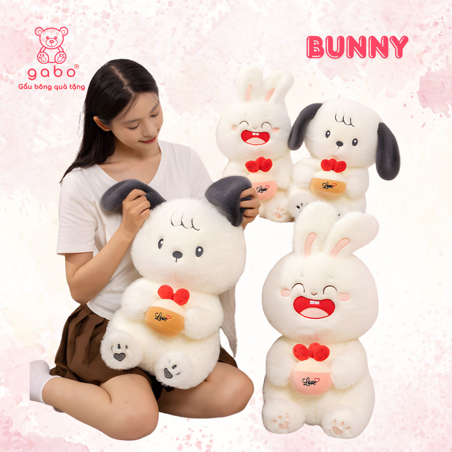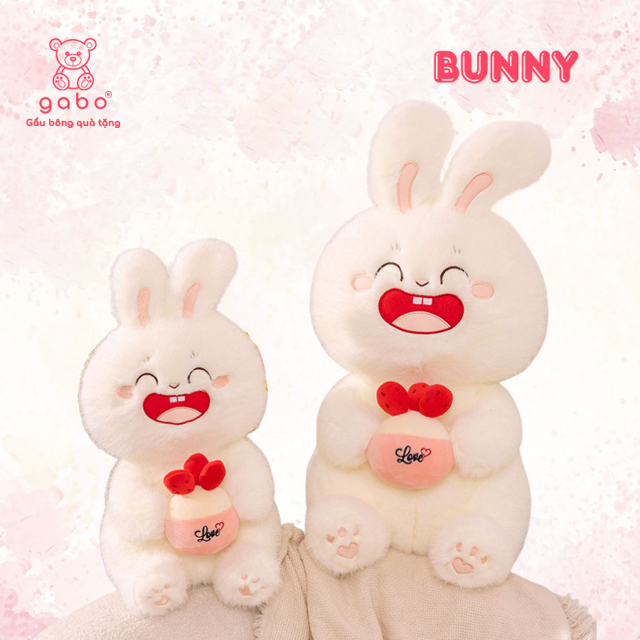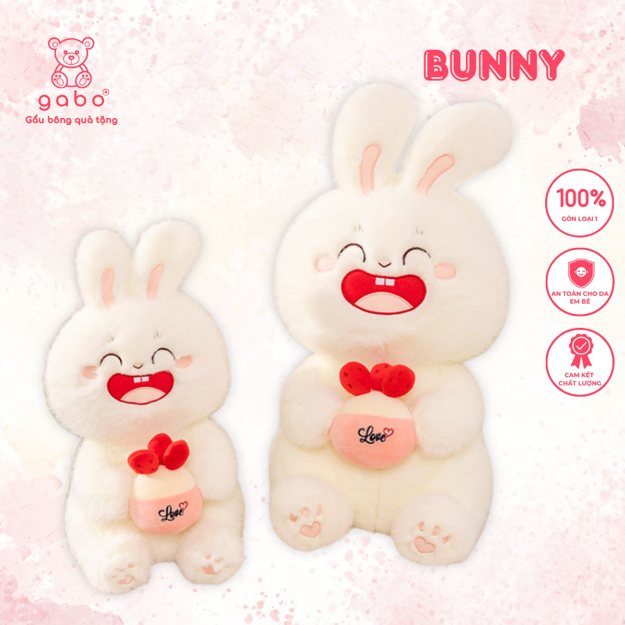 – TÊN SẢN PHẨM: Gấu Bông Thỏ Trắng Ôm Bánh Dâu, Thỏ Mặt Cười Cầm Bánh, Quà Tặng Đáng Yêu, Lông Mịn Hàng QCCC