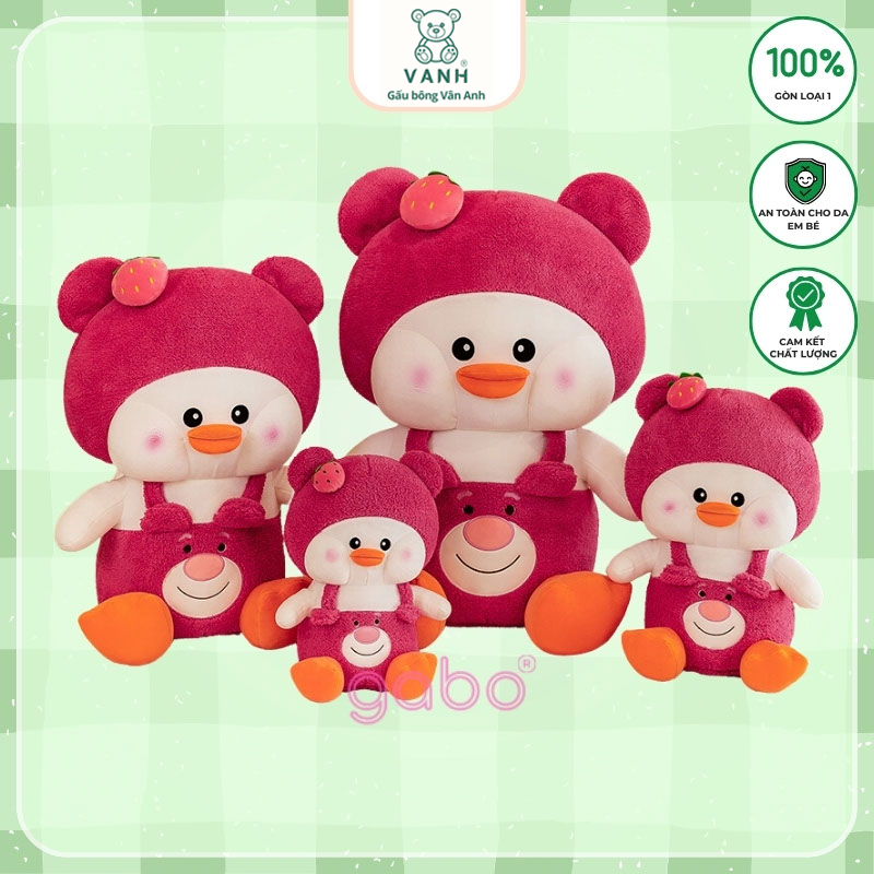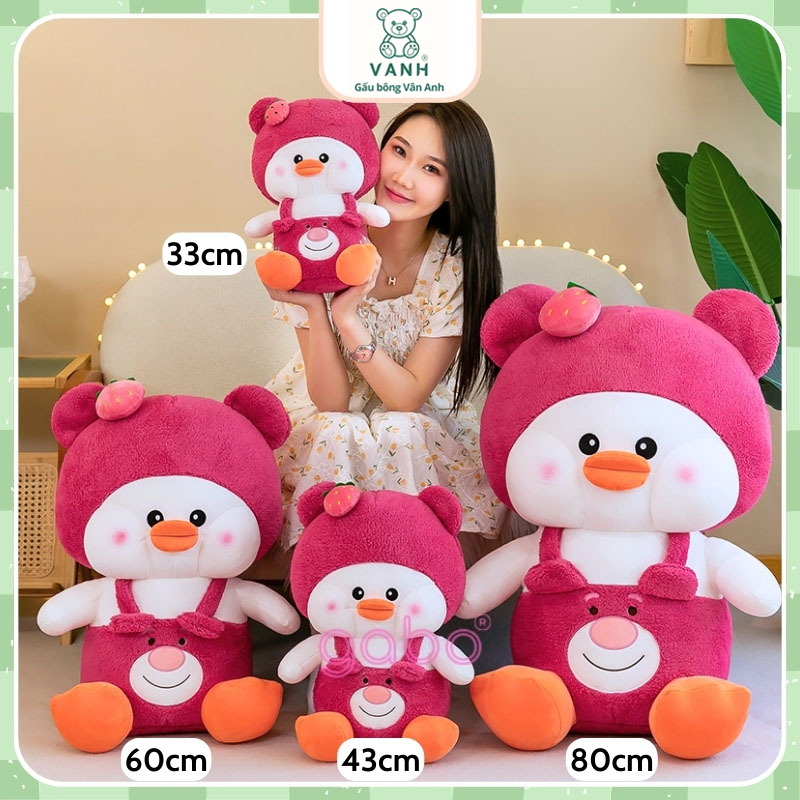 Gấu Bông Vịt Dâu Mặc Yếm Gấu Dâu, Vịt Cosplay Lotso Hàng Quảng châu mới về