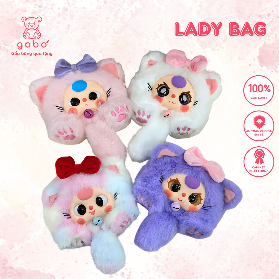 Túi Mù Bé Ba Mèo Lady Bag – mắt ngẫu nhiên hàng VN, BB3 mèo custom có khóa kéo, búp bê nhồi bông quà tặng cho bé